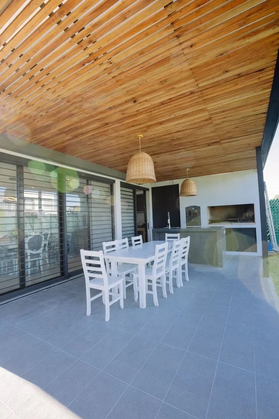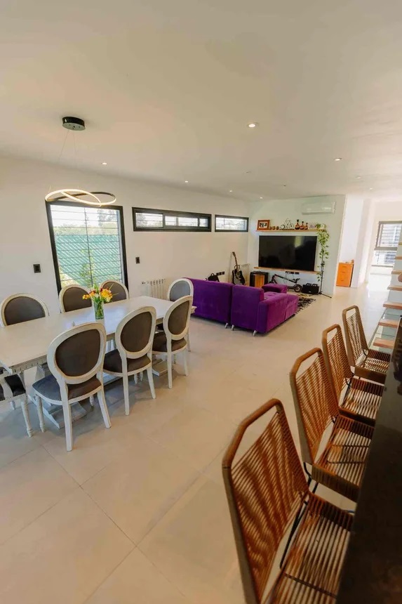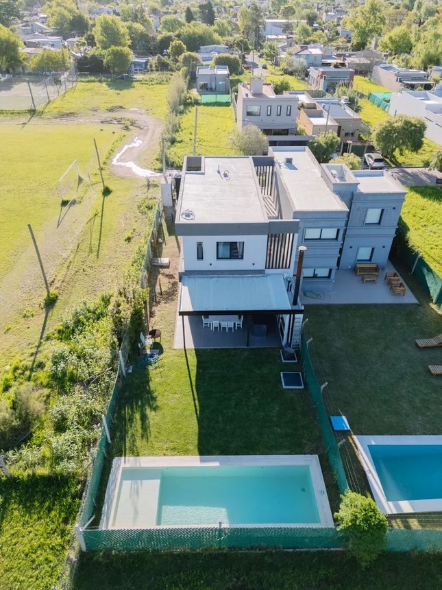 Excelente propiedad desarrollada en dos plantas, ubicada en un entorno tranquilo y de fácil acceso. Planta Baja: Hall de recepción. Dos dormitorios con placard. Baño completo. Amplio living y comedor con muy buena iluminación natural. Cocina equipada con muebles bajo y sobre mesada, integrada al comedor mediante una isla con conexión para lavavajillas y muebles de guardado. Bodega subterránea vidriada bajo la escalera. Jardín de invierno. Planta Alta: Dos dormitorios en suite, el principal con vestidor y salida a terraza privada. Exterior: Galería semicubierta con parrilla, horno empotrado a leña, isla con box de lavadero y espacio de guardado. Amplio jardín con pileta de 3 x 9 m, playa húmeda e iluminación LED. Cochera para dos autos con portones corredizos automatizables. La propiedad cuenta con alarma y sensores perimetrales exteriores, brindando seguridad en todo el perímetro.