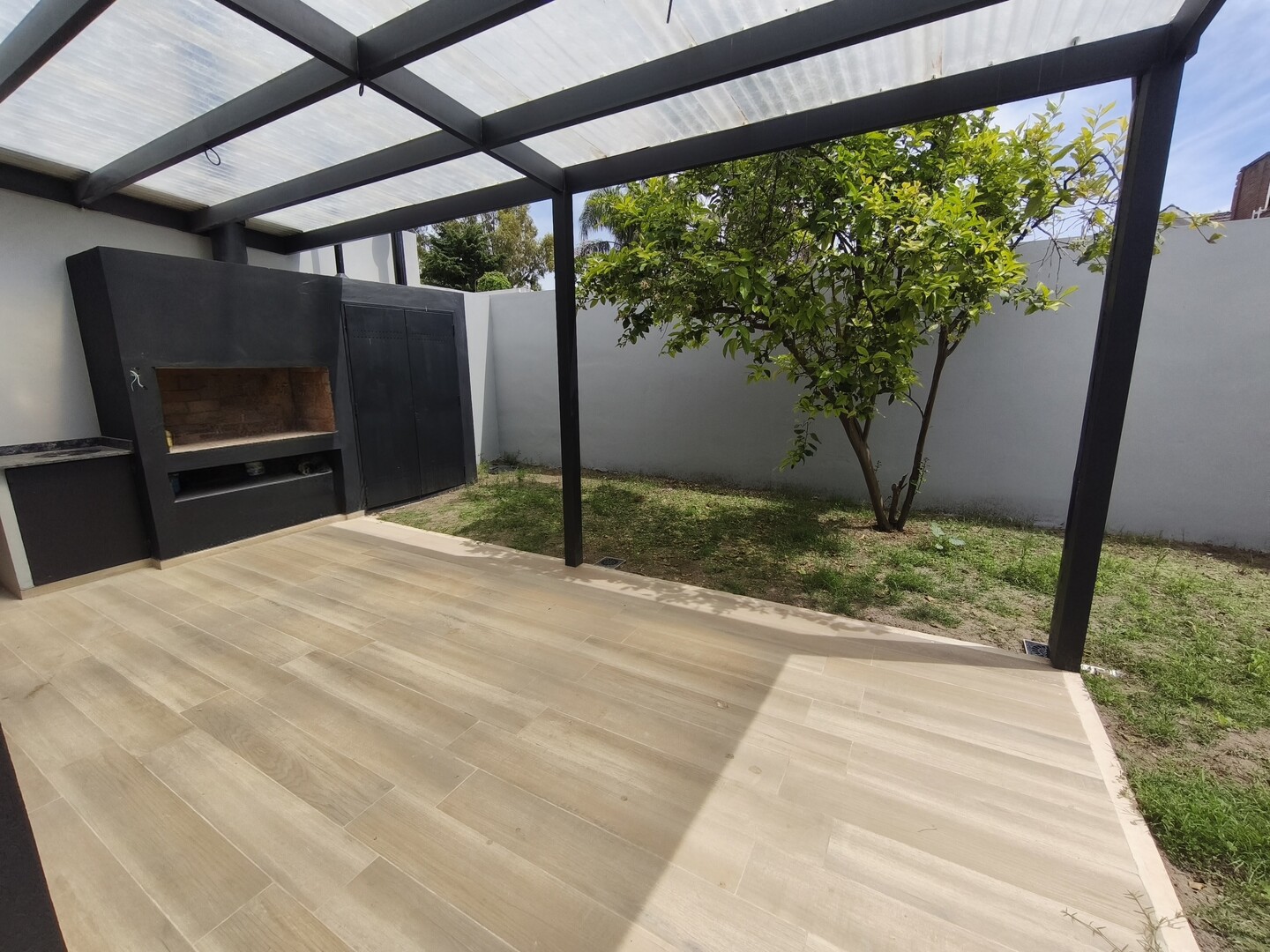 En el exterior, galería cubierta con parrilla y lavadero, jardín con verde y hermoso limonero