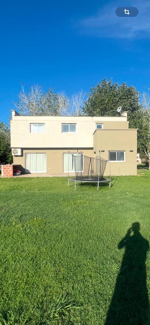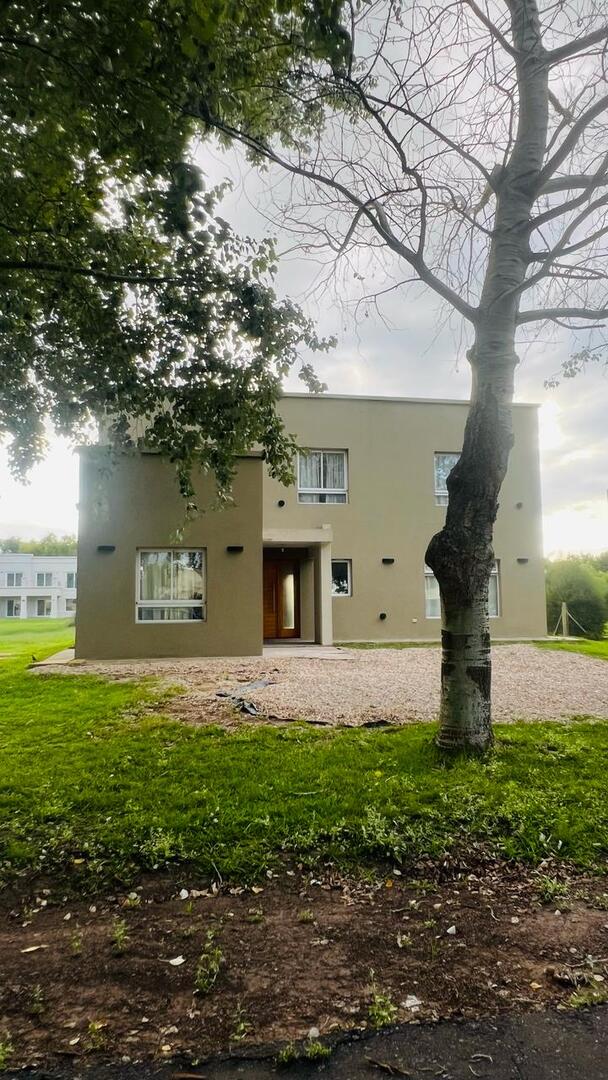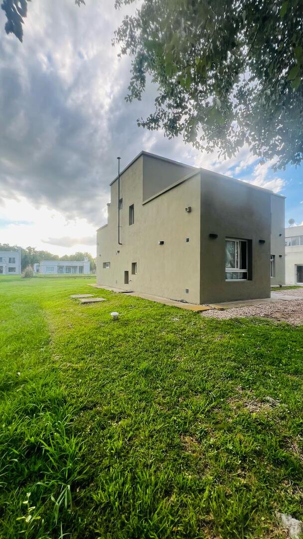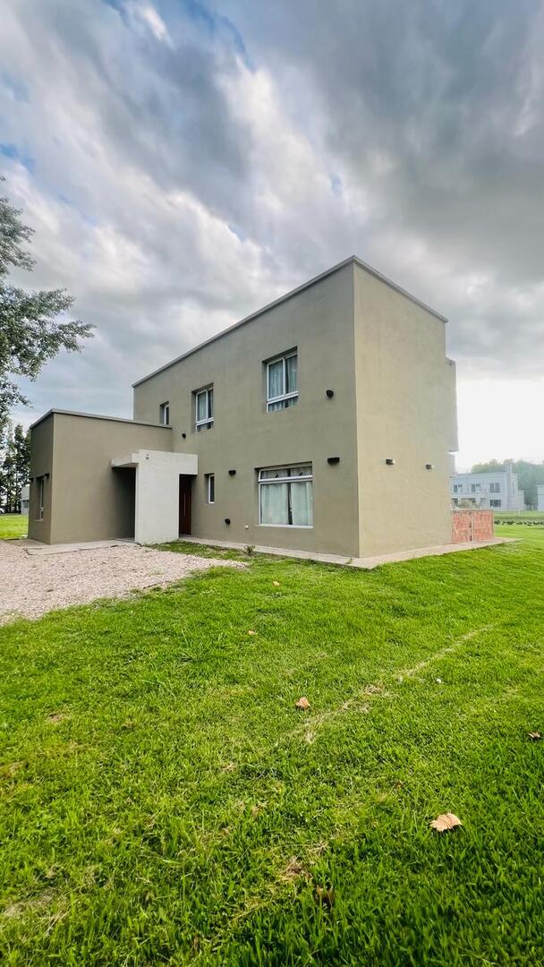 a terminar de unos 140 mts. cubiertos emplazada en un lote de 20 mts. de frente por 50 mts. de fondo, casa desarrollada en dos plantas, en planta baja, living, cocina, tolilette y comedor diario, en planta alta, dos dormitorios uno con vestidor, dos terrazas una al frente y otra al contra frente preparadas para ampliación de más dormitorios. Aberturas en aluminio con vidrios DVH. Cancha de golf, canchas de tenis, pileta, gimnasio