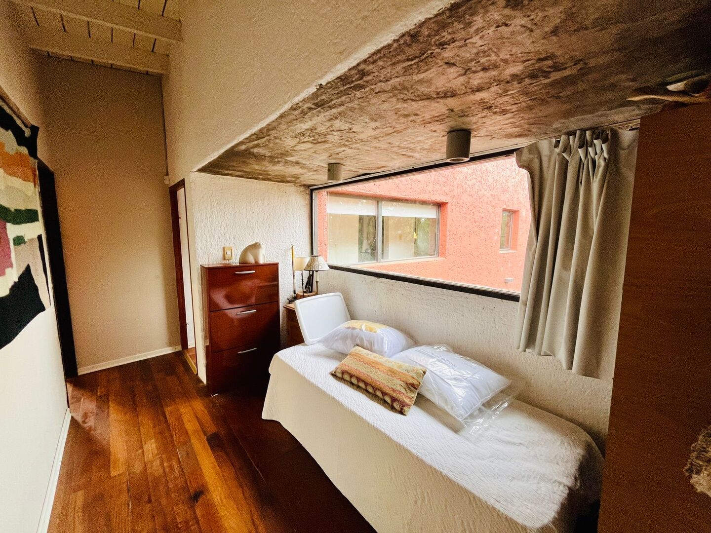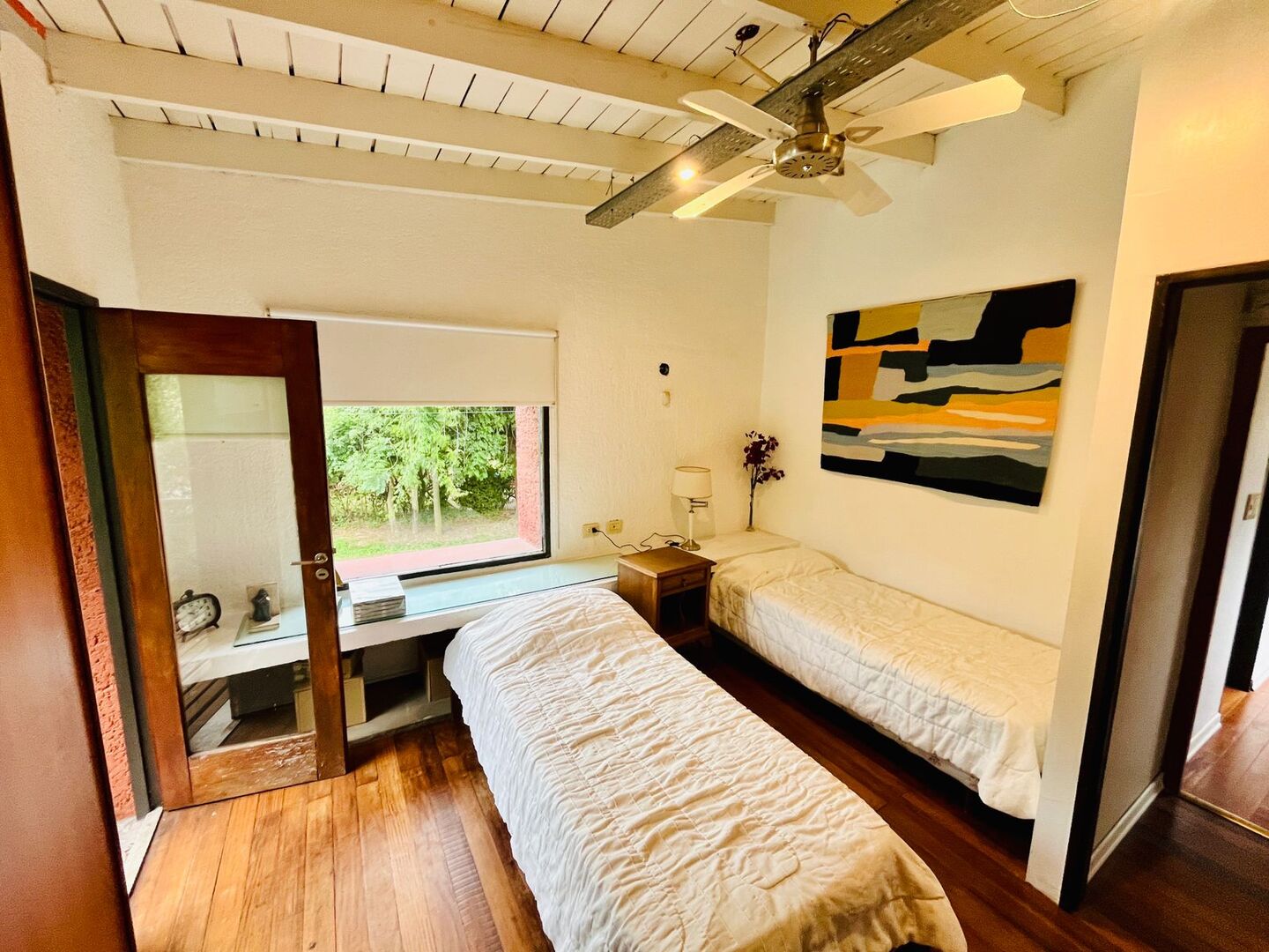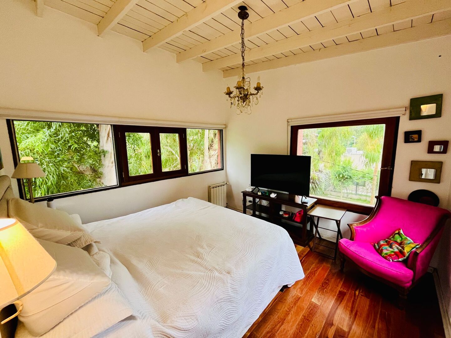 Otro dormitorio cuenta con salida a un balcón con vista abierta al jardín.