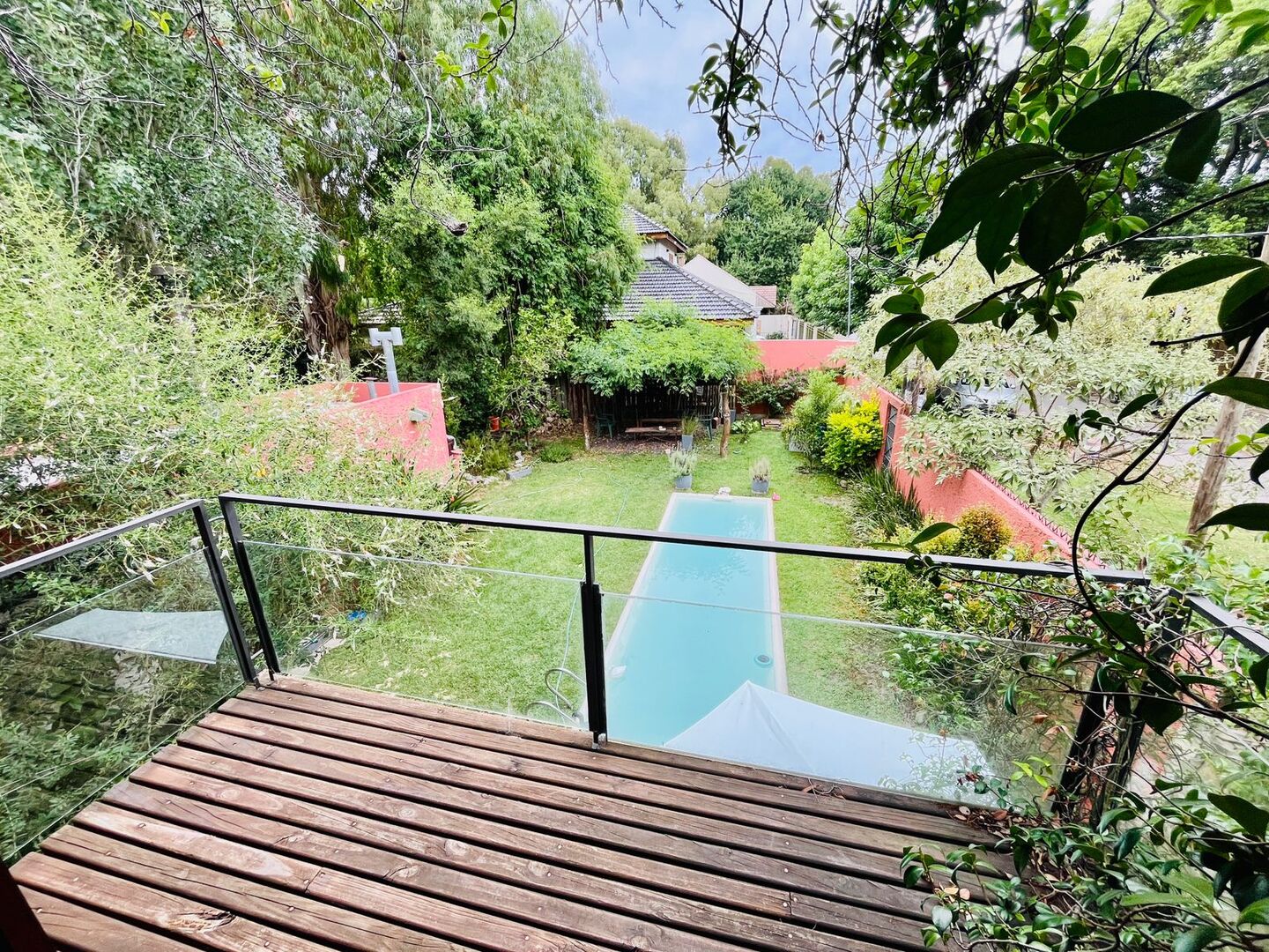 jardín parquizado, lleno de plantas, pileta con equipo completo, horno de barro y un quinchito que invita a disfrutar de la sombra y el aire libre en verano.