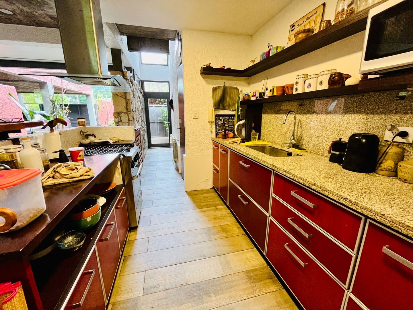 En planta baja, living comedor cómodo y vidriado, con cocina semi integrada, toilette de recepción y un lavadero de grandes dimensiones, con mesada adicional y parrilla techada, todo con salida directa al jardín.