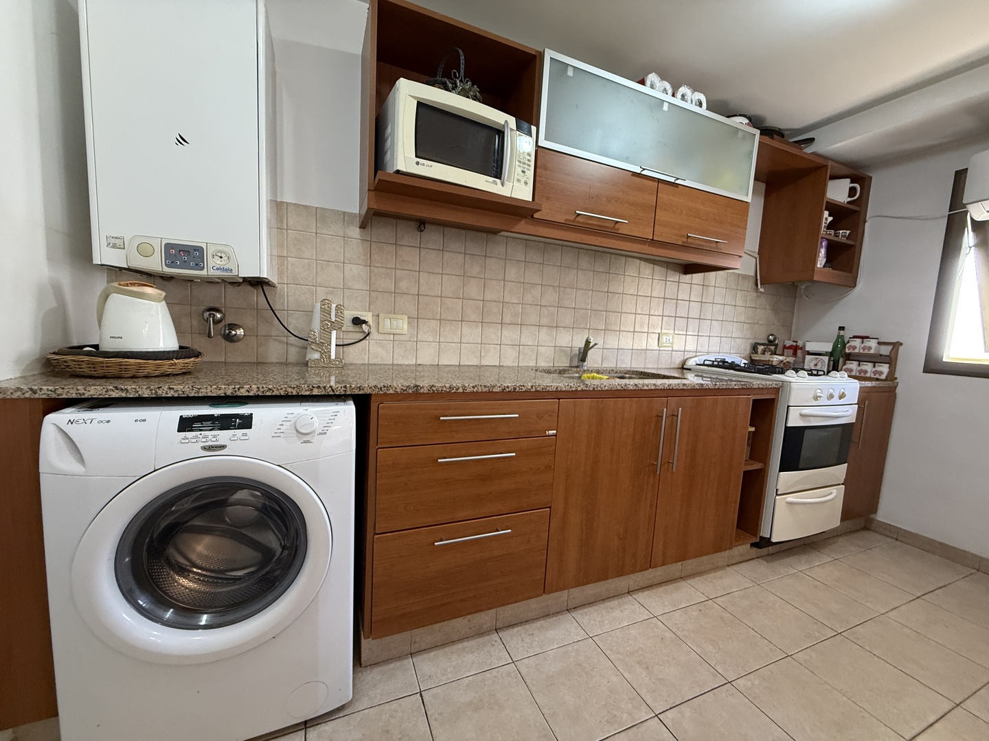 Departamento semipiso al frente. Consta de amplio living comedor, cocina semi-integrada totalmente equipada con muebles bajo mesada y alacenas, ventilacion natural.