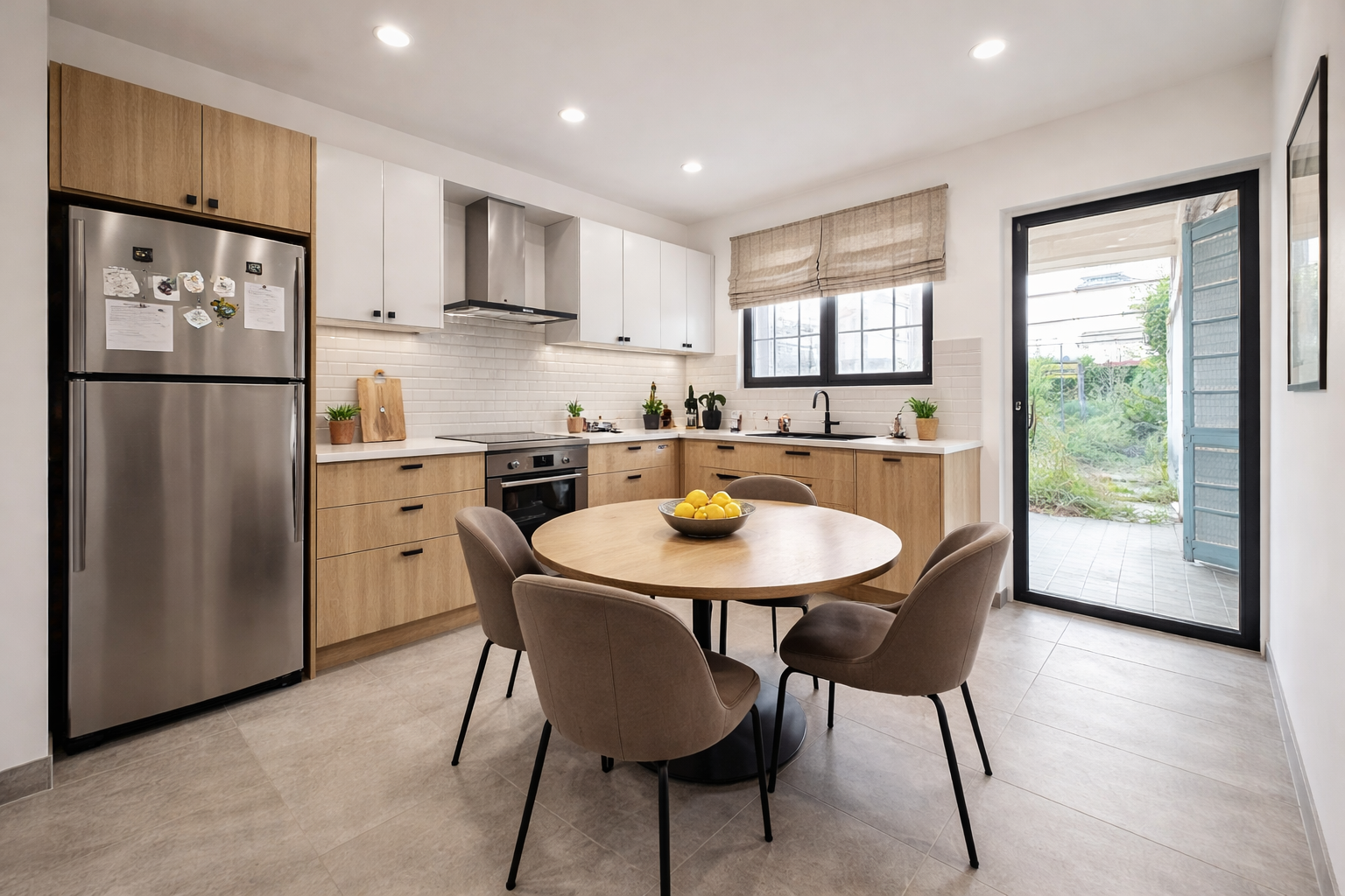 La vivienda cuenta con living comedor, sala de estar o recibidor, cocina separada, dos dormitorios y baño completo. Además, dispone de un segundo baño en el exterior.