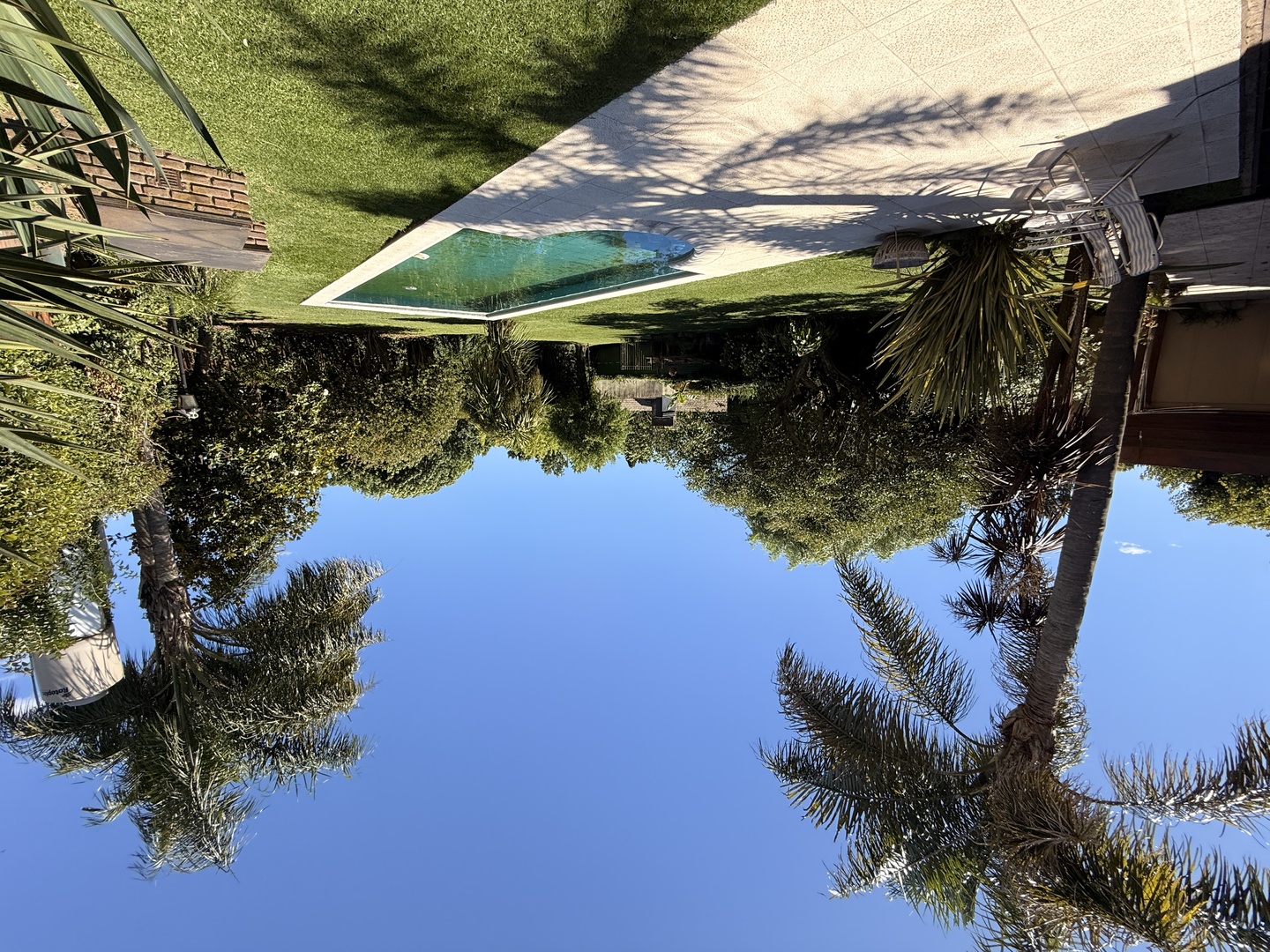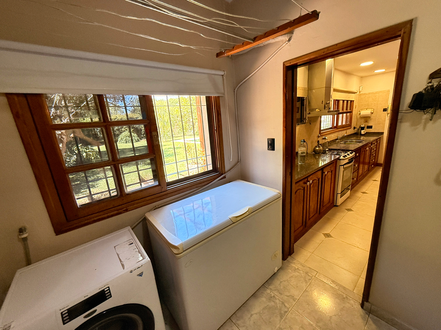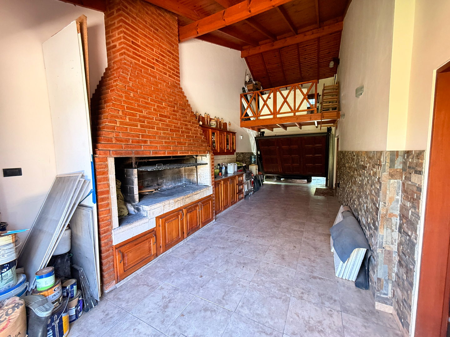 Gran parque con pileta, cochera cubierta para dos autos, semicubiertas para 4 y pasante al parque.
