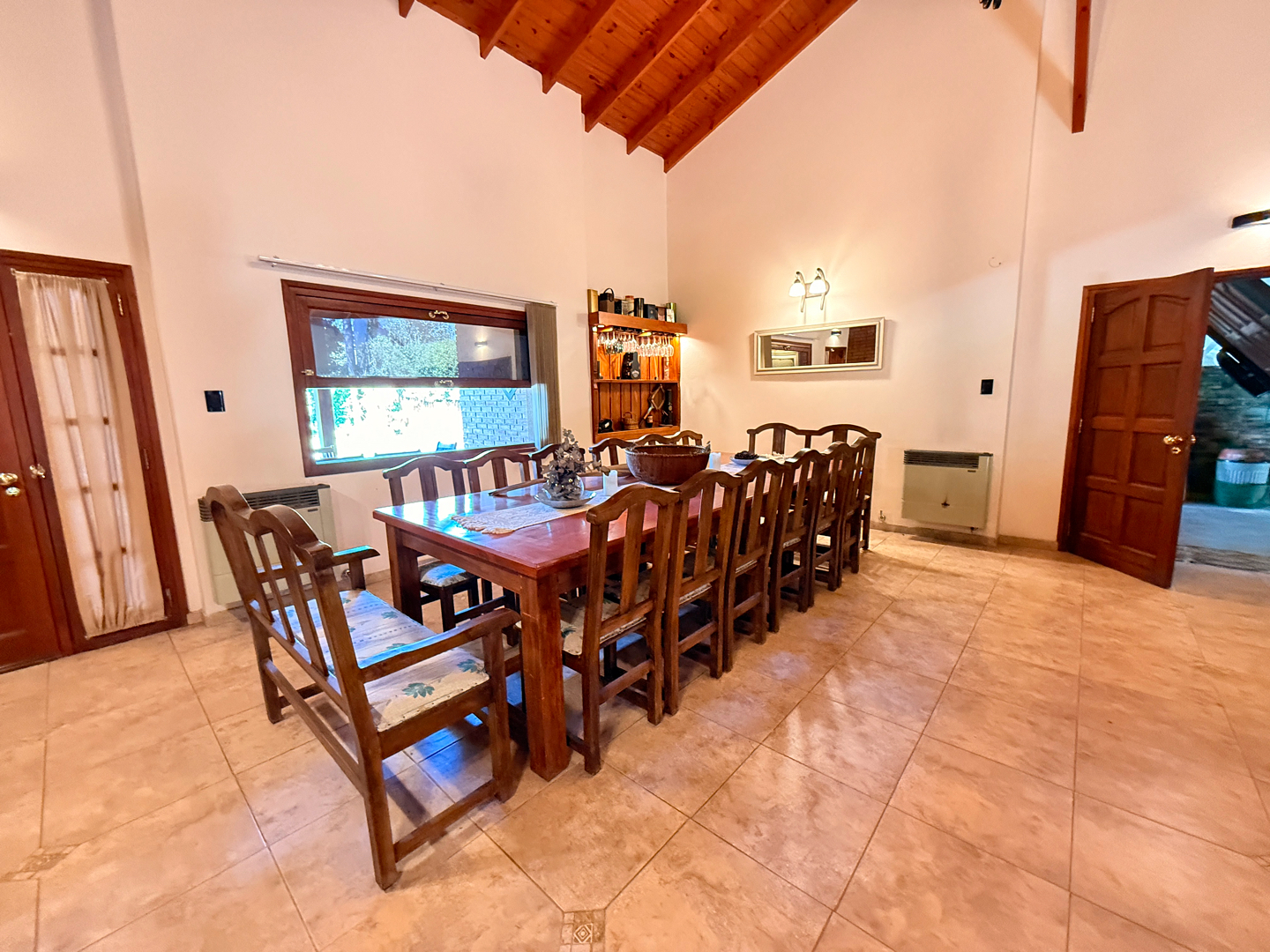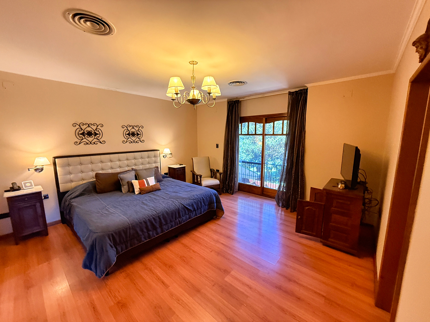 Caracteristicas y agregados importantes: Aires en living-comedor social de 7000 frigorías cada uno(2); dos tiros balanceados en comedor social; un tiro balanceado en recibidor; un tiro balanceado en playroom; un catalitico en cocina y un catalitico en estudio; portón de ingreso de rejas automatizado y corredizo; portón de madera automatizado y levadizo; bomba presurizadora Rowa ( capacidad para proveer agua en simultáneo a 6 baños ) planta alta con climatización central y split independientes LG; riego por aspersión, automatizado, frente y parque atrás; piscina revestida en su totalidad por venecitas; filtrado automático; vidrios con películas, las cuales hacen ver del interior al exterior y no del exterior al interior; paredes al exterior de 30 cm; hidromasaje esquinero “grande”; ducha escocesa en uno de los baños de arriba; instalación eléctrica sobredimensionada, circuitos independientes; instalación de agua aqua system; planta alta cielorraso de yeso, No durlok; parrilla enlosada; guardilla en cochera; bomba sumergible 2HP, hasta el puelche; llenado de tanque automatizado; ducha exterior, agua fría y caliente; amplia vegetación y añosa; cochera pasante/(abierta-cerrada); cerramientos de madera de alta calidad; aire frío-calor en cocina comedor diario; uno de los baños de planta baja con bañera; los cuatro baños son completos, todos con mamparas en sector ducha; mosquiteros en planta alta y parcialmente en planta baja; solárium atermico al igual que el piso de borde de piscina; piscina con luces; pérgola entre portones; central telefónica, 8 internos instalados;