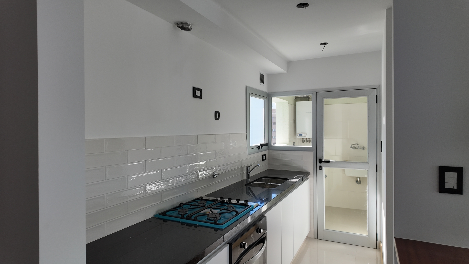 Amplia cocina con doble mesada, muebles completos colocados, Caldera Dual instalada, monocomando, mesada de granito negra. Preinstalacion para lavarropas incorporada en cocina y amplia ventilacion