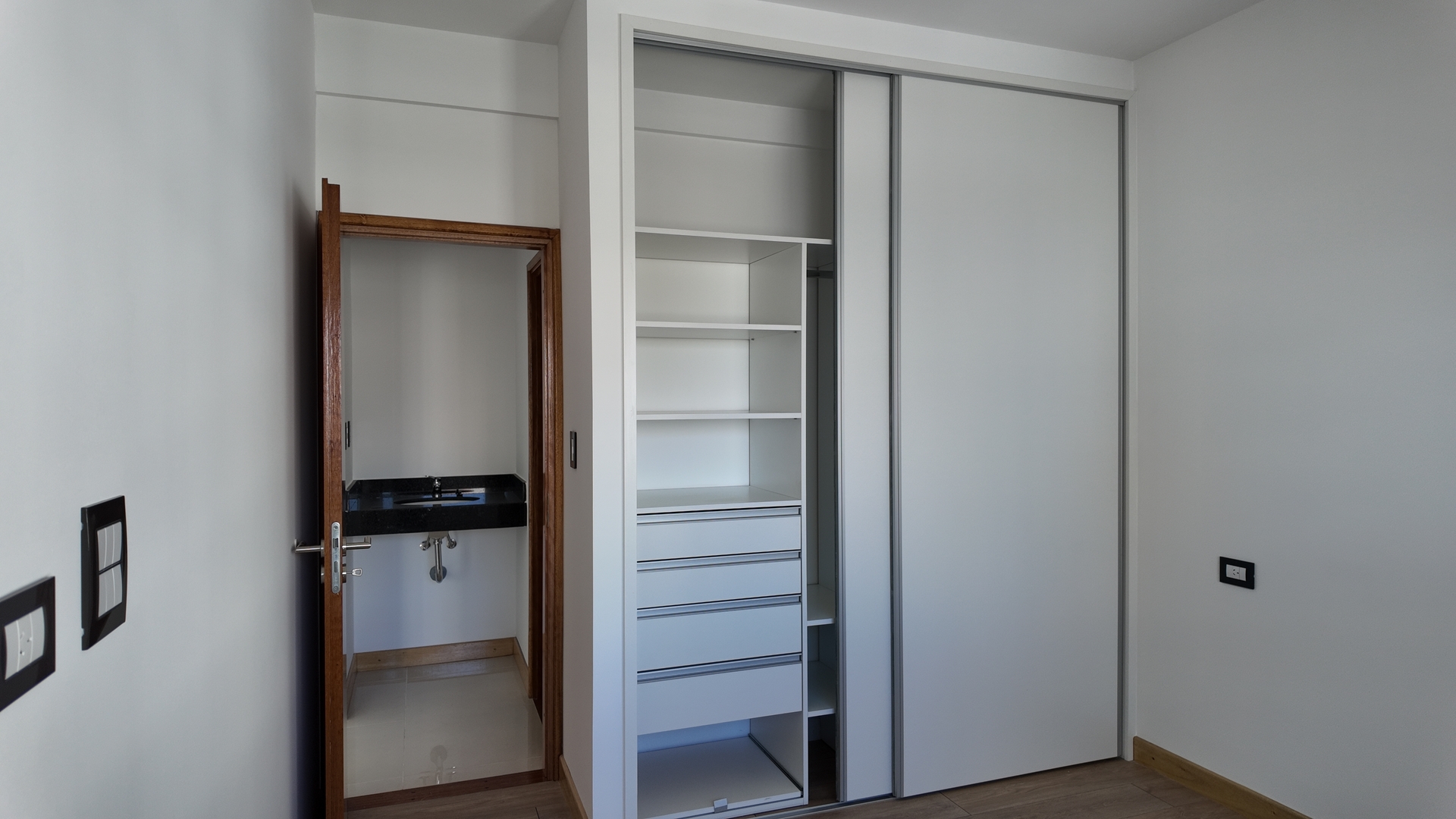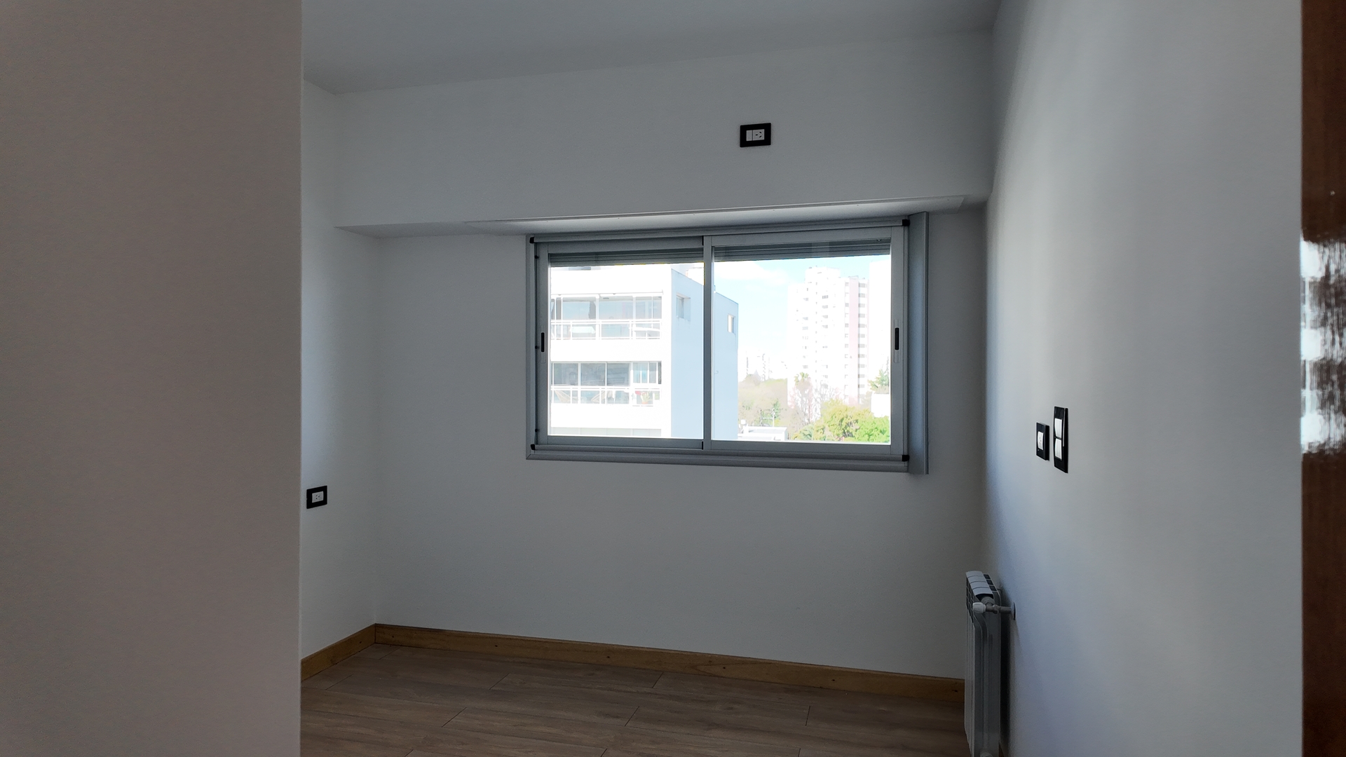 Dormitorio amplio con placard piso simil madera de porcelanato, interiores terminados y persiana