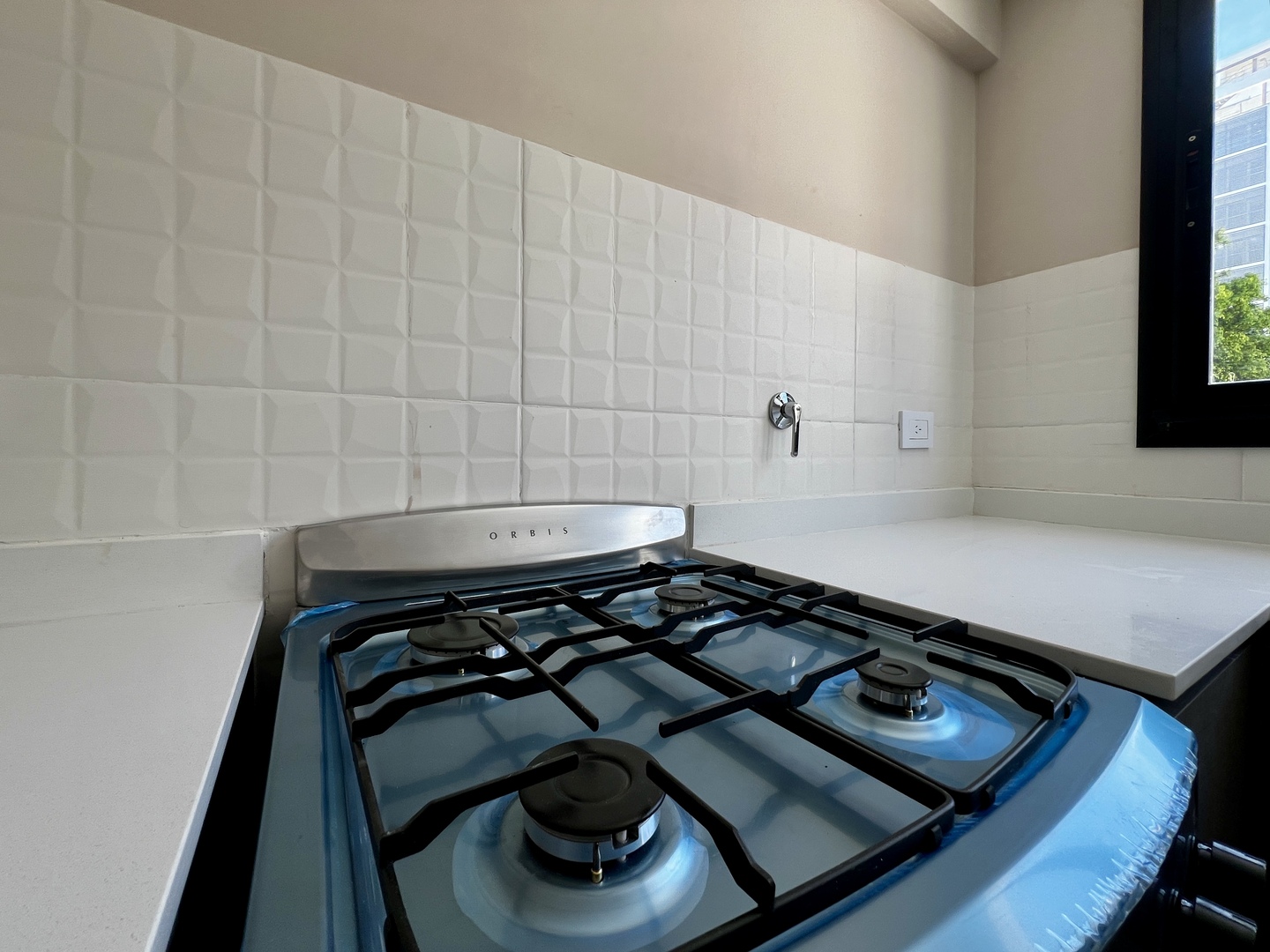 – Cocina equipada con cocina Orbis, pileta de acero inoxidable y mueble bajo mesada.