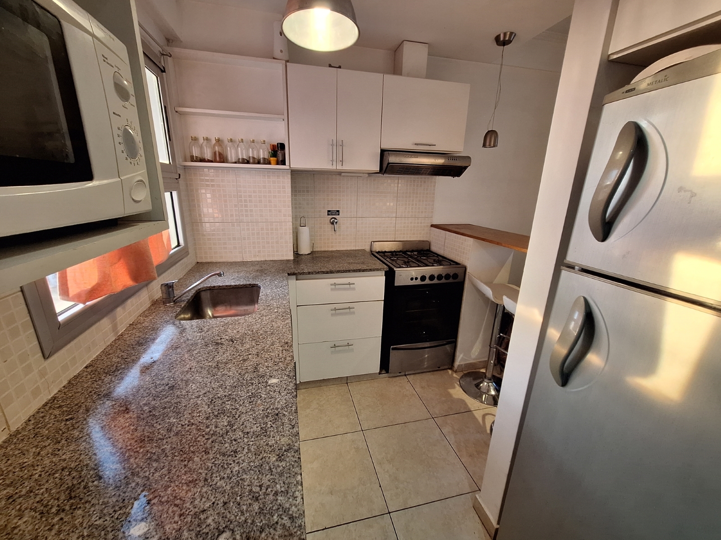 Consta de un ambiente amplio con cocina semi integrada con muebles bajo y sobre mesada, barra desayunadora divisoria. Baño completo con bañera. Posee aire acondicionado.