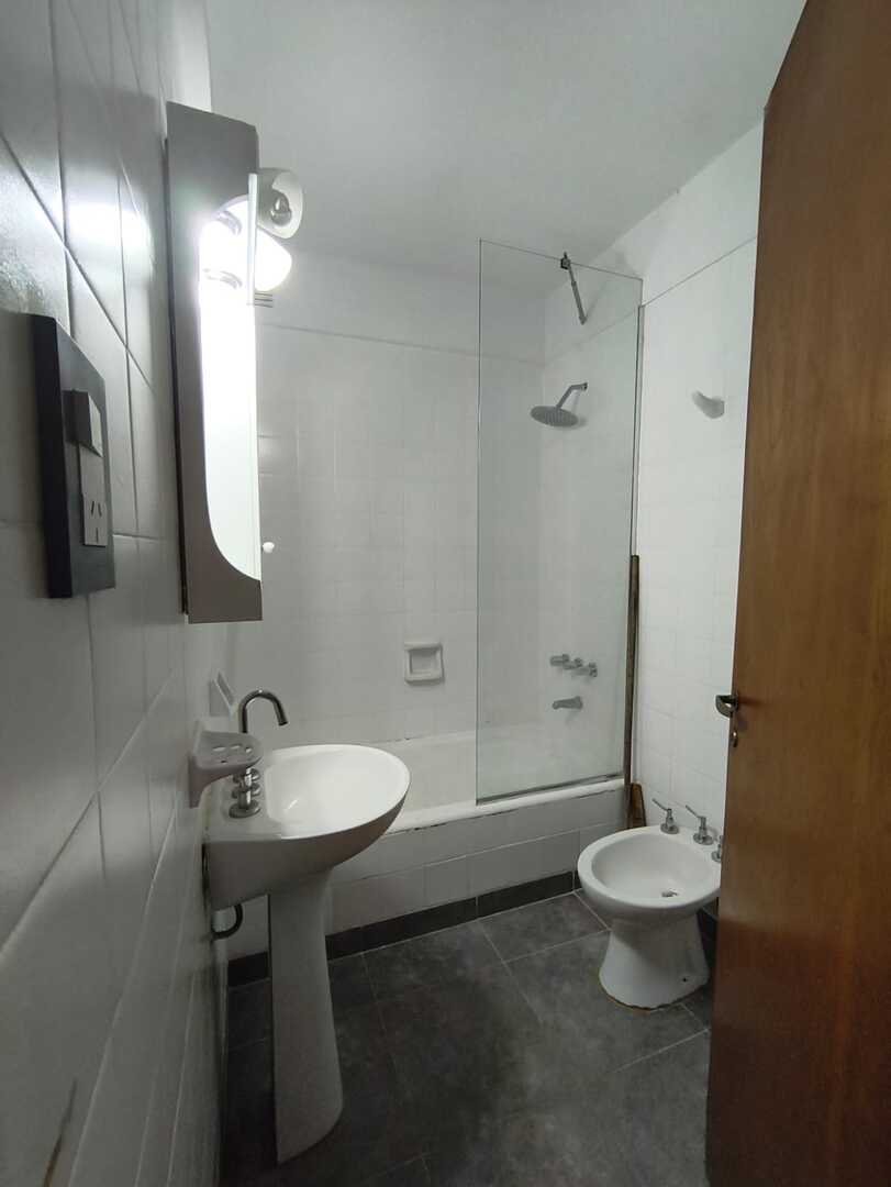Baño reformado, completo con bañera. Un dormitorio con placard.