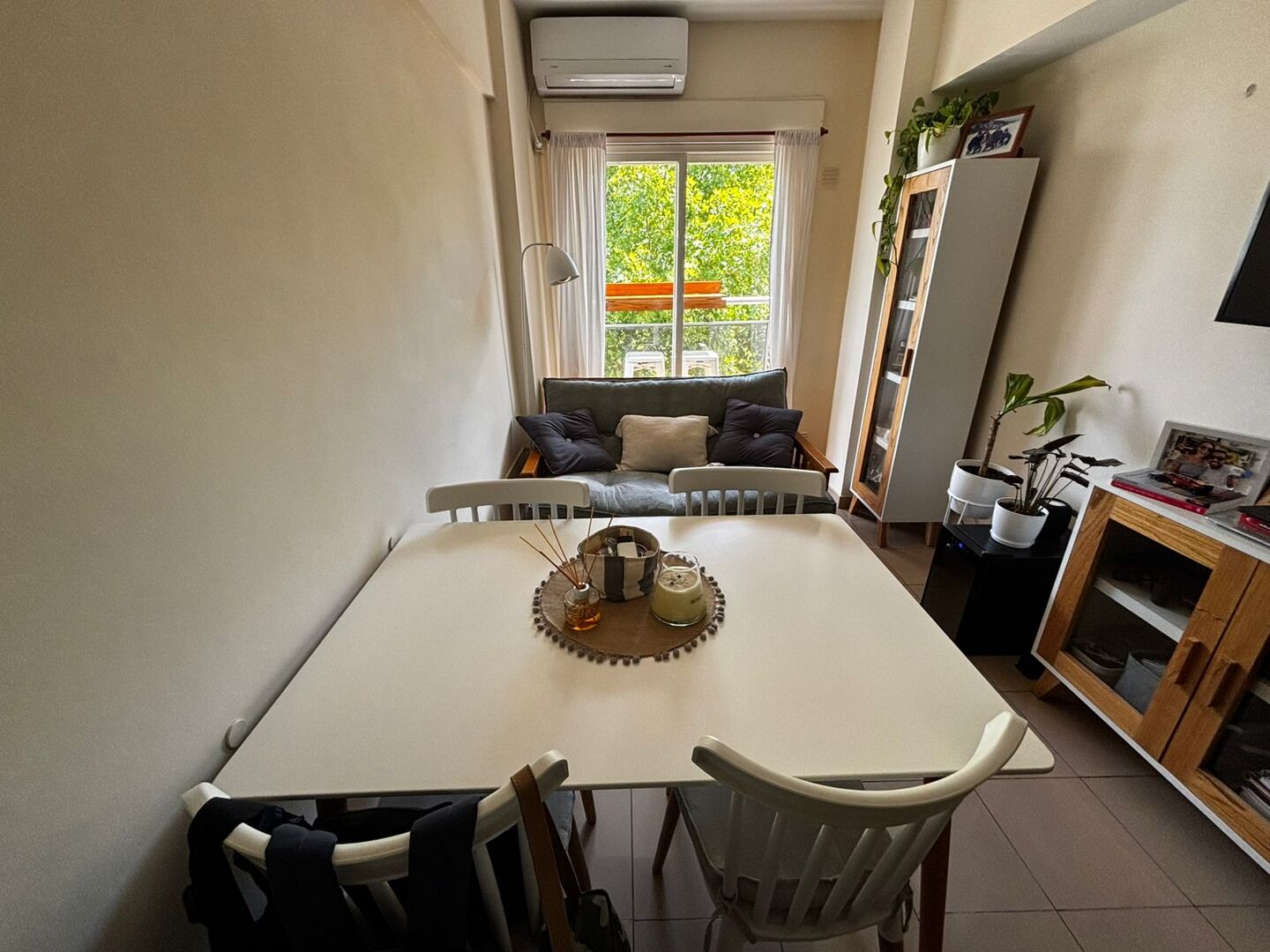 Living/comedor con pisos de porcelanato, calefaccionado mediante split frio/calor.