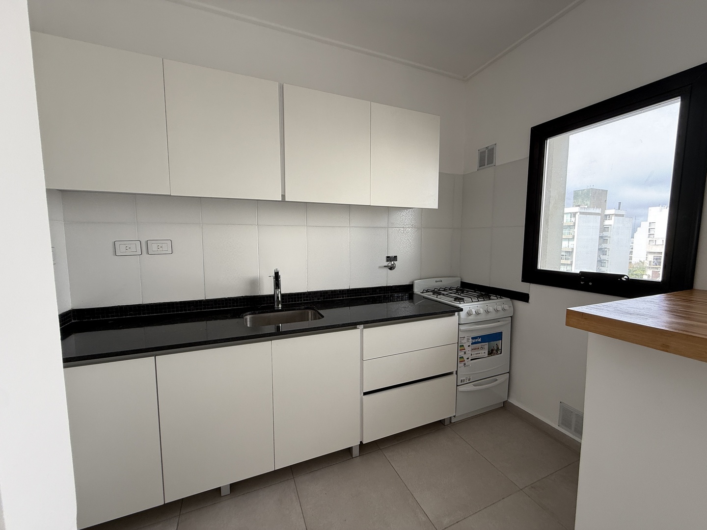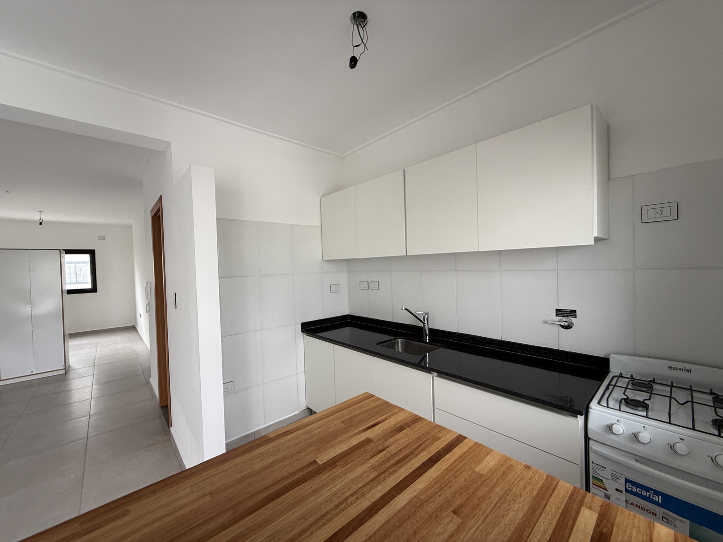 Cuenta con amplio living comedor, cocina integrada con muebles bajo mesada y alacenas, artefacto cocina a gas. Conexion pre-establecida de lavarropas.