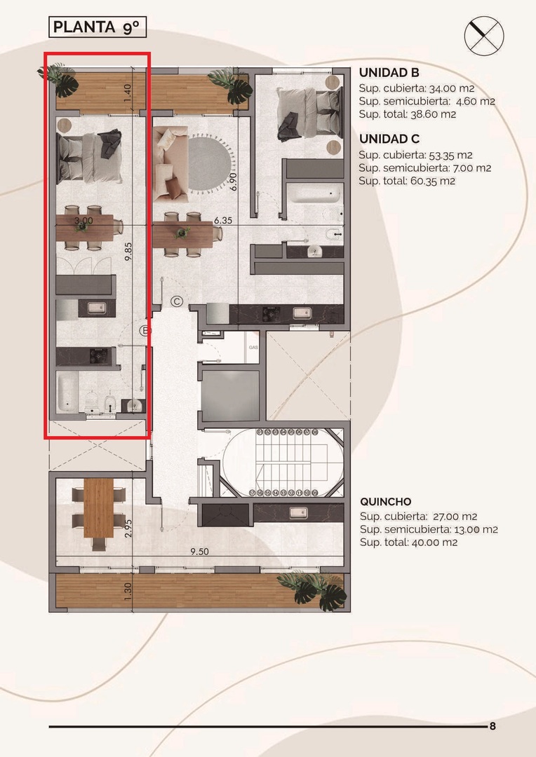 Ofrece un Amplio ambiente unico. Cocina semi integrada con barra desayunadora, muebles bajo mesada. Baño completo con plato de ducha. Balcón