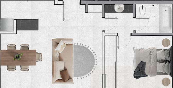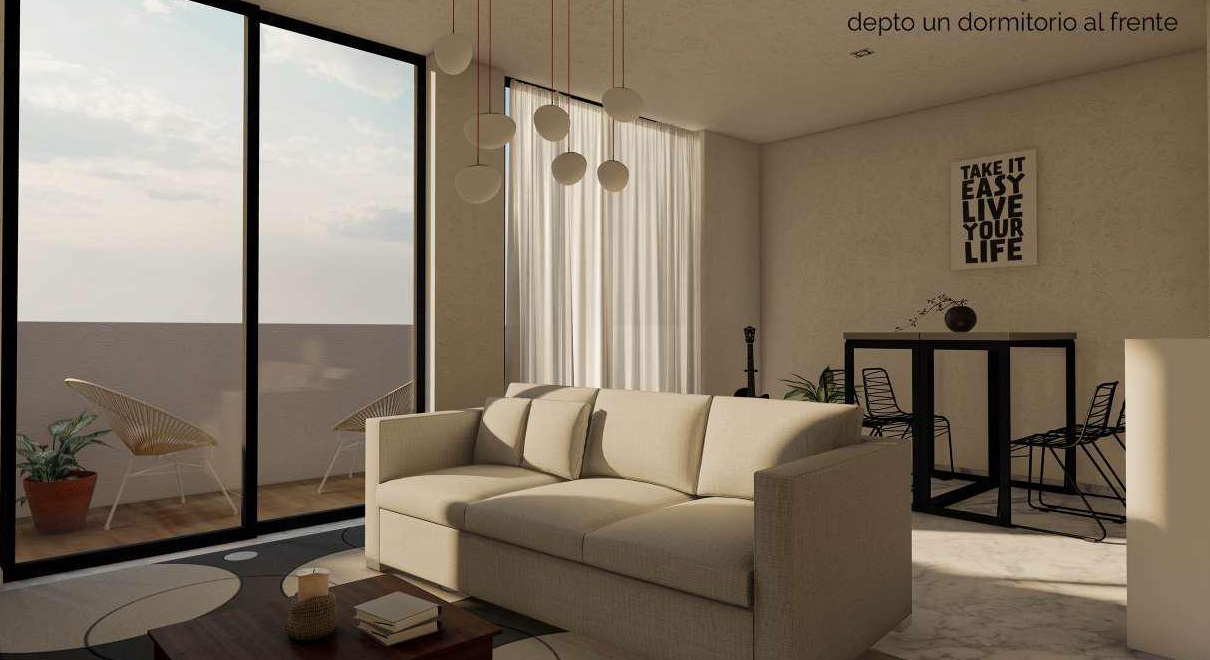 Ofrece de amplio living comedor. Cocina semi integrada con muebles bajo mesada y barra desayunador. Dormitorio con placard empotrado. Baño completo con plato de ducha.