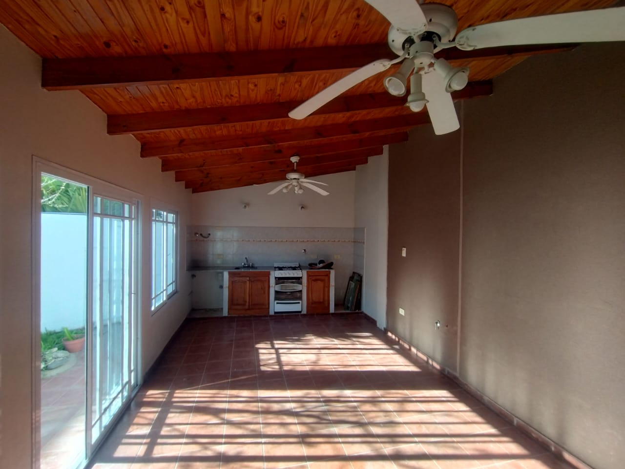En planta baja: comedor, cocina separada con barra desayunadora, un dormitorio con placard, baño completo, cochera, patio y un quincho de unos 20 mts. cubiertos aprox. con parrilla.