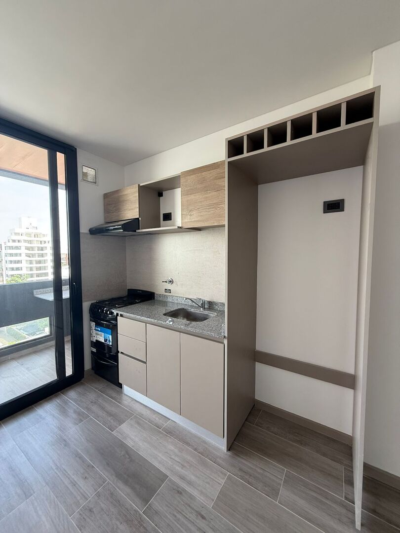 Constan de amplio living comedor, cocina integrada con muebles bajo mesada.