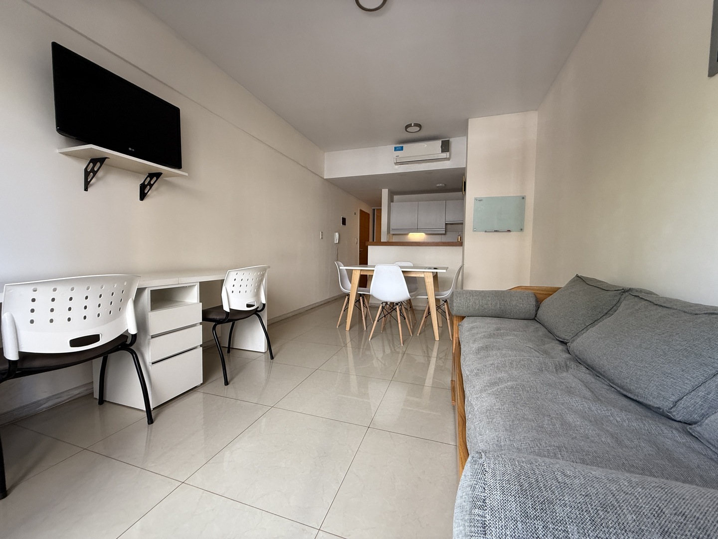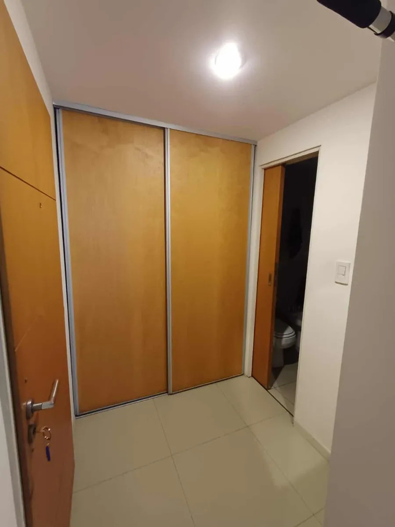 Al ingresar nos encontramos con un recibidor que conecta mediante un pasillo, a un amplio ambiente muy luminoso y un comodo balcón con vistas a calle 12.