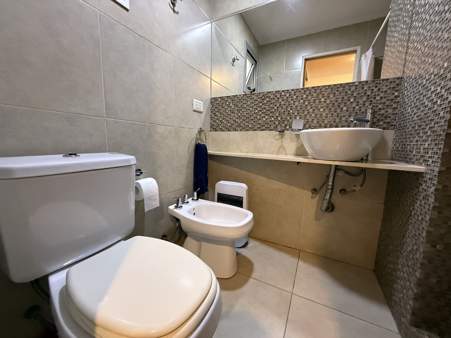 El baño completo con detalles de diseño y ventilacion natural terminan de configurar los 32 mts2 cubiertos que conforman este moderno departamento con 9 años de antiguedad, que ademas cuenta con aire acondicionado frio/calor y un amplio placard empotrado.