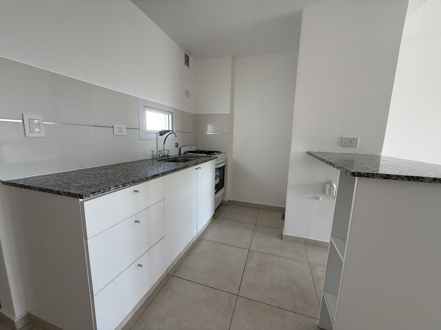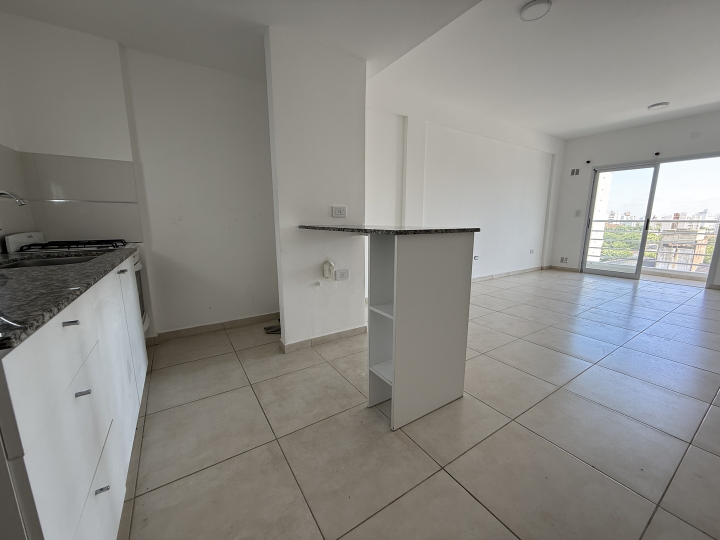 Consta de un amplio ambiente único. Cocina semi integrada con barra desayunadora y muebles bajo mesada.